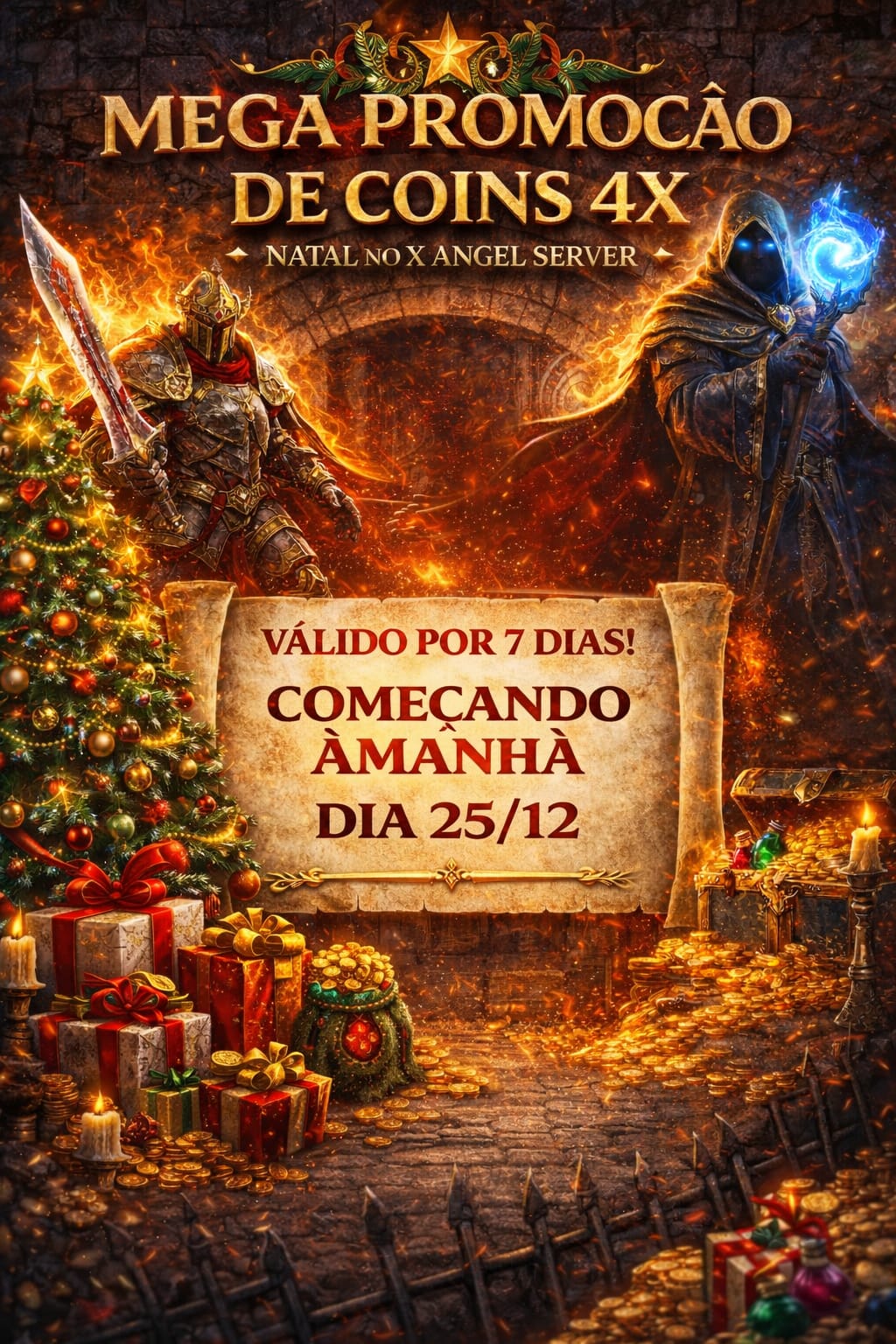 Os arautos do reino anunciaram: os portões de X Angel serão abertos para uma nova era com o melhor do PvP Old Retro Custom. Preparem suas lâminas, grimórios e corações — Abertura oficial acontecerá na sexta-feira, 21/11/2025, às 19:00 (Horário de Brasília).